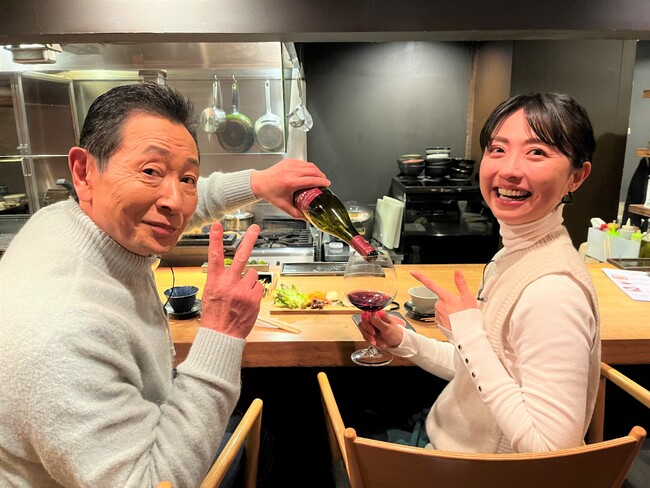 まずはしつこい脂っこさのない皮に、濃厚なチーズをかけたももなど、ワインにも合う贅沢な旨味に舌鼓を打つ2人。