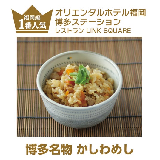 福岡県各地域で受け継がれる伝統的なご当地料理。ご飯とかしわ、福岡県産の新鮮な食材を織り交ぜて調理しました。地元のブランド米の活力と、噛むほどに広がる鶏肉の旨味をご賞味ください。