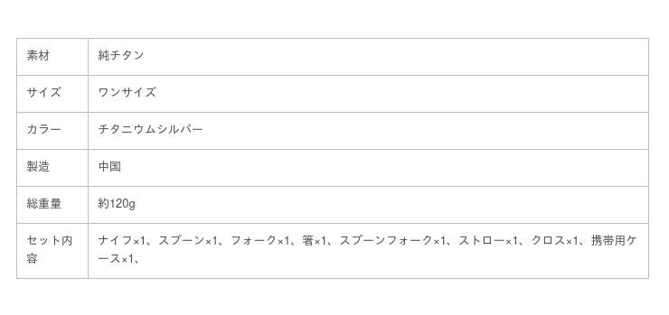 カトラリーは約7g~20g、防水バックは約33gであるので、カトラリーを防水ケースに収納した際の総重量は約120gになります。