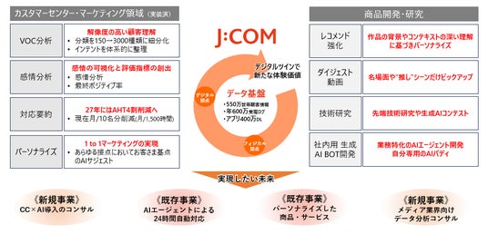 JCOM株式会社(J:COM、本社:東京都千代田区、代表取締役社長:岩木 陽一)は、顧客対応現場に生成AIを実装しました。第一弾となる今回のリリースでは、国内14拠点のカスタマーセンターおよびマーケティング領域での取り組みと成果を発表します。
