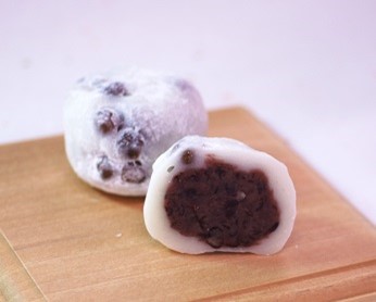北海道産黒豆を贅沢に入れた柔らかなお餅。中には、程よい塩気の北海道産小豆の粒あんがたっぷりと入っております。
