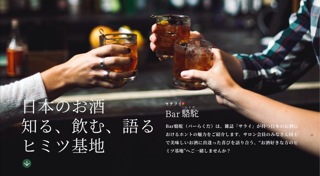小学館『サライ』の、お酒をテーマにしたオンラインサロン「Bar駱駝(バーらくだ)」、本日4月6日(水)いよいよスタートします!