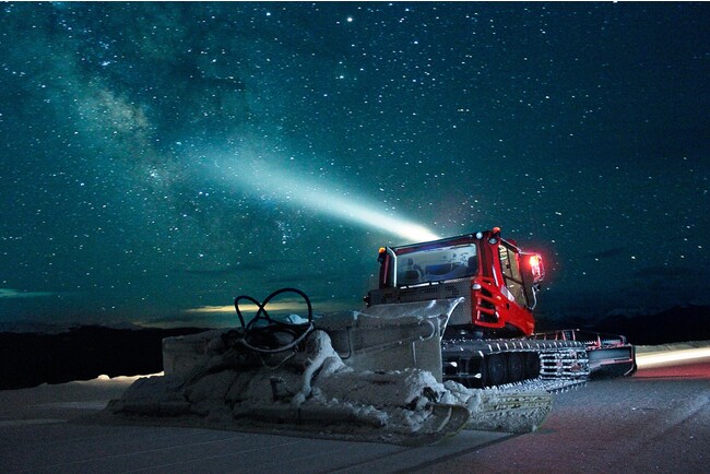 普段はゲレンデの整備に使用している雪上用のキャット(雪上車)内で、星空案内人のスペシャルトークを聞きながらスキー場高倉山山頂付近まで移動し、ラグジュアリーな演出をお楽しみいただけます。
