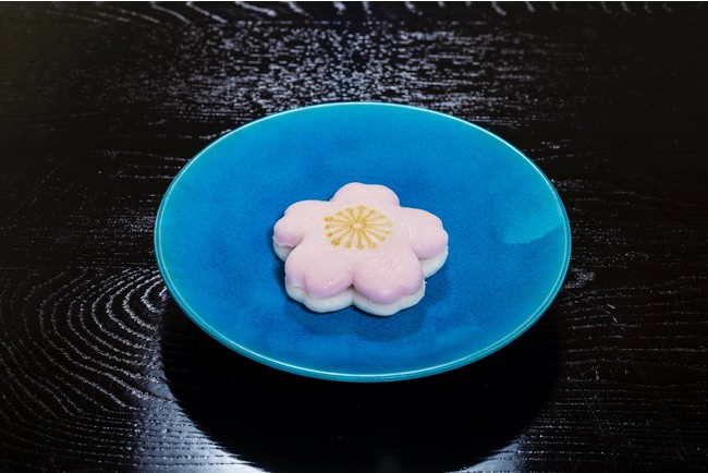 春の菓子。京都の四季の移ろいや茶道の行事に合わせて、茶の湯のもてなしのこころを菓子に表現する。「京菓子司末富本店」のさくら(500円)。