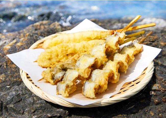 豊かな漁場に恵まれた八代海の新鮮な太刀魚を三枚におろして、ふんわり食感の串天にしました。