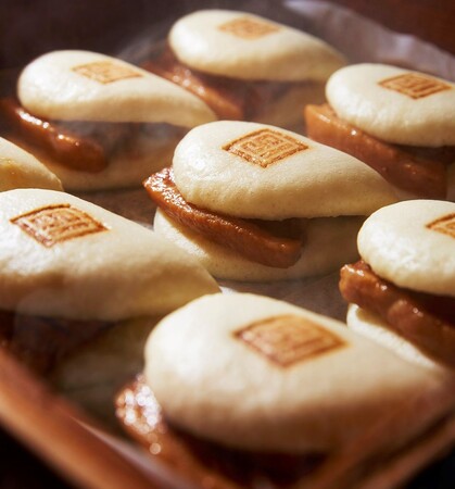 じっくり煮込んだ豚バラ肉をふわふわの生地ではさみこみました。