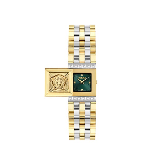 Versaceウオッチ2025年春夏コレクションは同ブランドのファッションコレクションのデザインコードを多数共有しています。Versaceのドレスやオーダーメイドスーツの構造が、インパクトのある時計の文字盤やストラップに反映されています。クラシックさとコンテンポラリーなスタイルがダイナミックにコントラストを形成し、時代を超越した職人技のディテールを散りばめた革新的で新しいスタイルです。メドゥーサとグレカ模様というブランドアイコンであるデザインコードが複雑に、そして驚きの手法でコレクションの中に取り入れられ、それぞれにVERSACEらしさを醸成しています。
