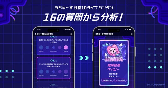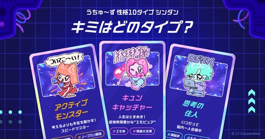 LINEヤフー株式会社(以下、LINEヤフー)が運営する占いサービス「LINE占い」にて、新キャラクター「うちゅ~ず」と一緒に楽しめる新コンテンツ「性格10タイプシンダン」の提供を開始しました。診断はすべて無料で、16問の簡単な質問に答えるだけで、全10タイプの中から自身の性格タイプを導き出します。