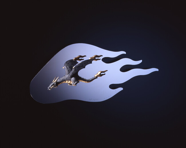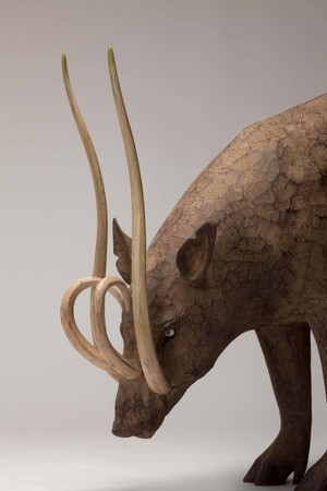 鏡のギミックによりモチーフが軽やかに浮遊して見える「in the frame」シリーズ、熊本市動物愛護センターに保護された犬や猫を題材にした「光の肖像」の作品群など多様な作品を発表いたします。また、大学の卒業制作《カラスの舟は昇華する》(1996年)から、《死に生ける獣-Babirusa-》(2016年)などの代表作、日曜劇場『Get Ready!』(TBS)への提供作品、そして新作《森神-Silver back―》(2023年)まで、常に挑戦し続ける彫刻家・大森暁生の軌跡とこれからをご覧ください。
