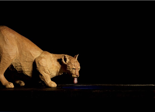 彫刻家・大森暁生は、主に木と金属を素材に、実在するものから架空のものまで命あるものをモチーフに制作しています。その彫刻は、霊気を帯びているかのように神秘的で、今にも動き出しそうなほどリアルです。本展では、大学の卒業制作を含めた初期作品から始まり、熊本市動物愛護センターを取材し制作した意欲作、大森暁生の代表作の一つである家具とモチーフを合わせた木彫作品や、幻想的な「in the frame」シリーズなど、作家の世界観を代表する作品約50点を展示、そこに作家が今までに紡ぎだしてきた言葉を作品と合わせて展覧いたします。