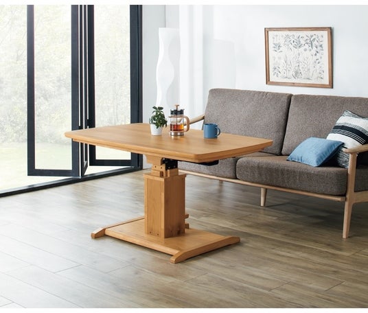 夏でも使える、便利に使える、こたつでもある、昇降式こたつテーブル。布団がなくても使える速暖ヒーター採用で、暖かさと高いインテリア性を両立させています。テーブルの高さは無段階調節で、食卓としてもソファテーブルとしてもパソコンデスクとしても使用可能です。こたつとしては、斬新といえるこの商品は、“試してから購入したい”アイテムとして支持を得ました。