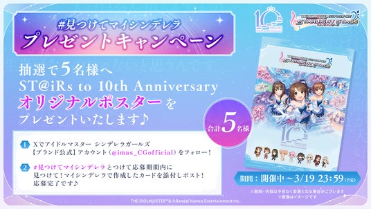 「#見つけてマイシンデレラ」とハッシュタグをつけてX上にカードを添付しポストいただいた方の中から、「ST@iRs to 10th Anniversary オリジナルポスター」を合計5名様にプレゼント!