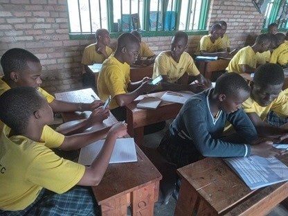 ルワンダ共和国ムハンガ教員養成校のモバイルツールを活用した学習の様子