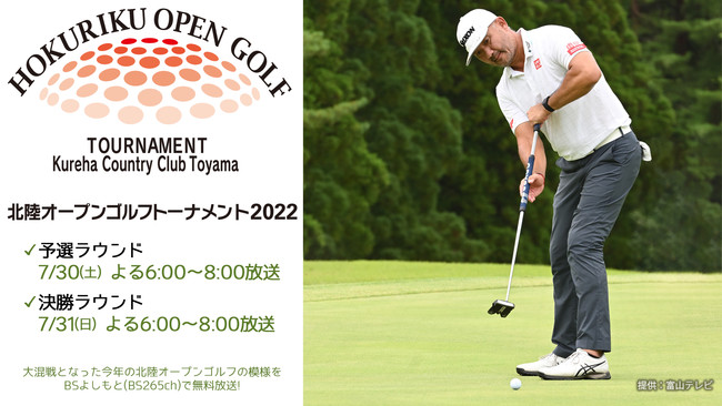 この度、BSよしもとチャンネルでは、7/15(土)16(日)富山県・呉羽カントリークラブで行われた 「北陸オープンゴルフトーナメント2022」の模様を、7/30(土)予選ラウンド、7/31(日)決勝ラウンドで放送いたします。
