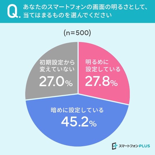 そこで今回は事前調査で「スマートフォンを使用している」と回答した全国の男女500名を対象に「スマホ画面の明るさ」についてのアンケートをおこないました。