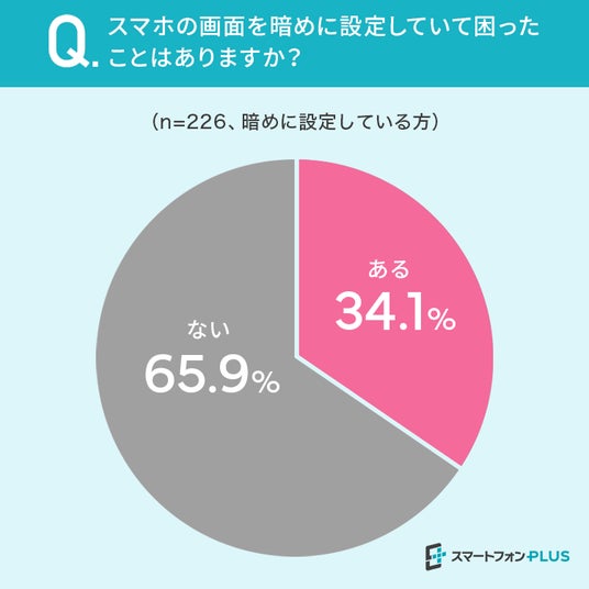 34.1%の方が、スマホの画面を暗めに設定していて困ったことが「ある」と回答しています。