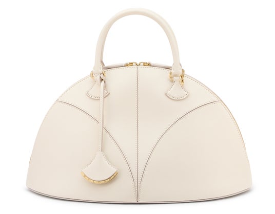 ブルガリの卓越したジュエリークリーエーションの伝統にインスピレーションを得たディーヴァ ドリーム マーキースは、時代を超えたエレガントな楕円形のシルエットを特徴とする貴石のカットに由来した、ドーム型のバッグです。本コレクションから登場するこのバッグは、自然なシボの細かいゴートレザーで、“カラ” モチーフの曲線を巧みに表現しています。カラーリングは、同系色または鮮やかなコントラストで展開されています。