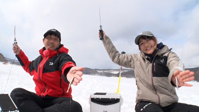 アングラーは、ワカサギ釣り歴25年。シーズン中は30日以上足を運ぶワカサギ釣りのエキスパート、久保田稔。そして、北海道出身の千葉百々絵。3歳の頃にワカサギ釣りを体験し、今では船釣りなどさまざまな釣りを楽しんでいる。