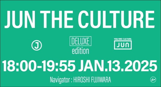 「JUN THE CULTURE」では、藤原ヒロシが独自の視点で選んだアートやデザイン、ファッショントピックス、そしてジャンルレスなミュージックセレクトでお届けしています。1月13日(月・祝)は、2時間の「DELUXE EDITION」として、特別内容でお送りします。