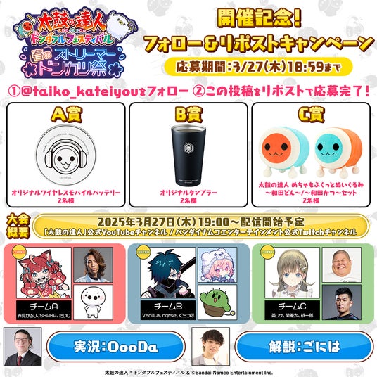 キャンペーンの詳細はこちら:https://dondafulfestival-20th.taiko-ch.net/special/spring_streamer_cp.php