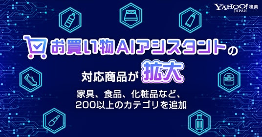 LINEヤフー株式会社(以下、LINEヤフー)が運営する「Yahoo!検索」は、生成AIが商品選びをサポートする「お買い物AIアシスタント」(以下、本機能)にファッション、家具、食品、化粧品など200以上のカテゴリーを追加し、サポート対応商品を大幅に拡大しました。今回のカテゴリー追加により、より多くのユーザーの日常のお買い物シーンに即した商品選びを簡単に行えるようになります。
