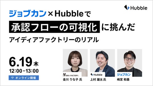 株式会社DONUTS(東京都渋谷区、代表取締役:西村 啓成)が提供するバックオフィス支援クラウドERPシステム「ジョブカン」は、2025年6月19日(木)に、オンラインセミナー「ジョブカン×Hubbleで承認フローの可視化に挑んだアイディアファクトリーのリアル」を開催します。