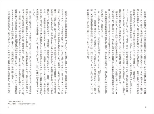 溺愛してくれた父のこと、両親の離婚、高校生の時に乳がんで亡くなった母との思い出、父のアルコール中毒と浮気と肺炎による死、年の離れた弟との不仲、夫とのネット上での出会いや、夫と出会う以前の男性関係などを振り返り、自分は他者への共感力が低く、無感情で、回りの人のことなど気にしない冷たい人間なのでは、と不安を抱きます。