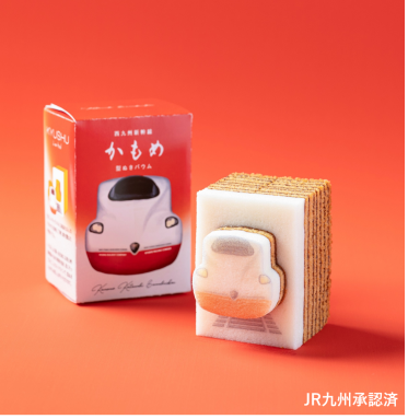 芳ばしいキャラメルに海塩をほんのりきかせた生地を、丁寧に焼き重ねた平焼きバウム。いちばん上の真っ白い生地には西九州新幹線かもめの車両を描き、形にそってほどこしたカットラインで、型ぬきしながらお召し上がりいただけます。
