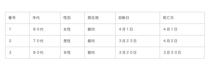 都内で新型コロナウイルスに感染した方が死亡されましたのでお知らせします。