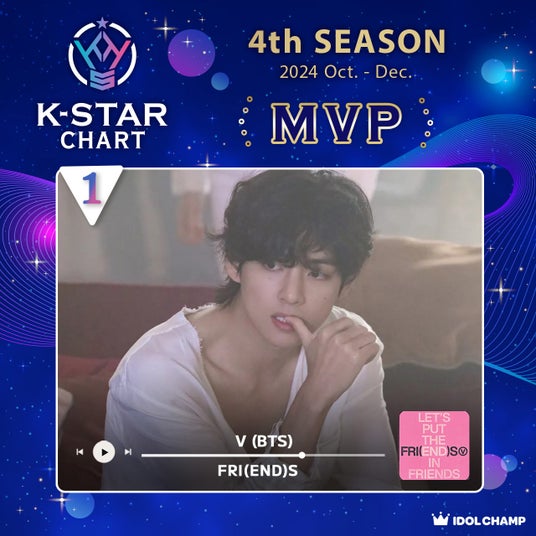 また、K-STAR CHART 2024年10月~12月の「4th Season Chart」を発表!V(BTS)の「FRI(END)S」がシーズンMVPを獲得しました。