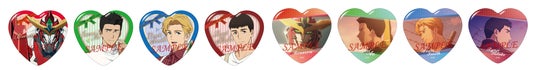 描き下ろしイラストと作中場面写真を使用したハート型の缶バッジです。