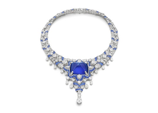 2025年5月5日(ニューヨーク、アメリカ)- ブルガリのアンバサダーであり、俳優のアン・ハサウェイがニューヨークで開催されたメットガラに出席し、中央に123.35カラットのサファイアがあしらわれたハイジュエリーのネックレスに、同じくサファイアのリング、そしてダイヤモンドのリングを合わせました。