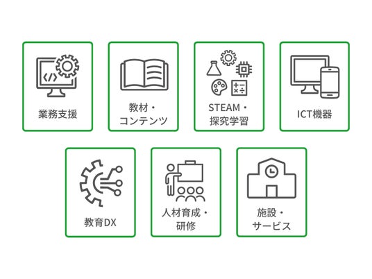 学校・教育機関、企業の人事・研修部門などの方に向けた日本最大級の教育分野の展示会です。年に2回、東京ビッグサイト、インテックス大阪で開催。教育現場の課題に合わせ、業務支援、教材・コンテンツ、探究学習・STEAM教育、ICT機器、教育DX、人材育成・研修、施設・サービスの7つのエリアで構成しています。