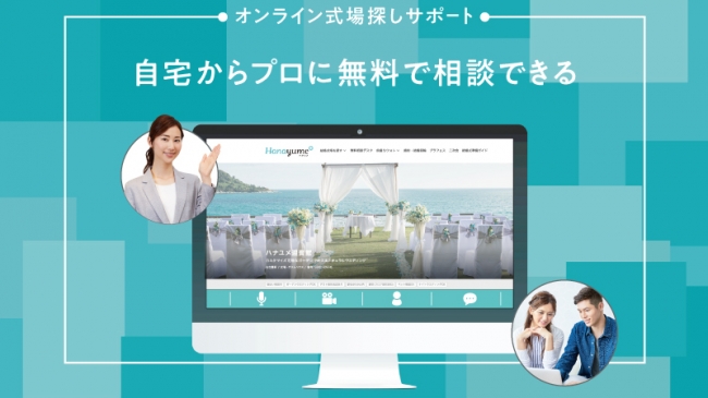 「ハナユメオンライン相談」は、これまで「ハナユメウエディングデスク」各店舗にて対面で行っていた結婚式の相談を、ご自宅などからオンライン上でできる無料サービスです。
