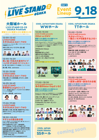 「LIVE STAND 22-23 OSAKA」タイムテーブル 9月18日(2日目)