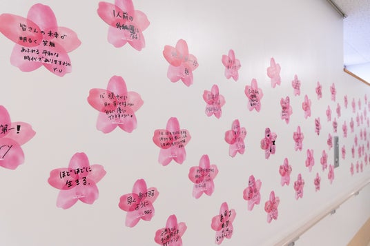 さらに、サッカーの「サンフレッチェ広島」やバレーボールの「サントリーサンバーズ大阪」など、プロスポーツチームも参加し、選手の夢とサポーターの夢が一体となって桜を満開にします。4月1日の入社式に活用する企業も増え、新入社員が夢を桜に書いて宣言したり、小中高校や大学・専門学校などで、生徒や学生が書いた夢を掲示したり、卒業式や入学式で桜に書かれた夢を飾ることも広がっています。飛騨市、佐世保市、南相馬市、伊予市や浪江町など自治体が、市民が夢を桜に書いて見られる場を用意する動きも、他地域でも広がりつつあります。また、患者さんとその家族の夢が集まる病院、子どもたちの夢が咲く地域の駄菓子屋さん、町のレストランやパン屋さん、ホテルやお寺に至るまで、様々な場所で人々の夢の桜が咲いています。
