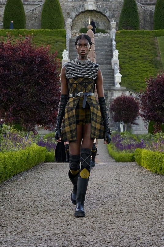 6月3日(月)にエディンバラのドラモンド城で発表された2025年クルーズ コレクション ショーではアウター・ヘブリディーズ諸島を原産地とする職人技で織られた織物 ハリス・ツイードがファーストルック含む数多くのルックを彩りました。100年以上の歴史を持つ風習と伝統に基づいたこのファブリックは、今日に至るまで、島に住む職人たちの独自ネットワークによって築き上げられ、それぞれの自宅で足踏み織機を使って織り上げられています。