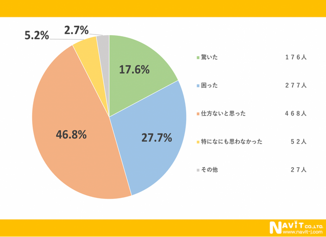 郵便料金の値上げについて「仕方ないと思った」と回答された人は46.8%と半数に迫る人数となりました。次に多かったのは「困った」で27.7%でした。頻繁に使う人にとっては大ダメージになります。
