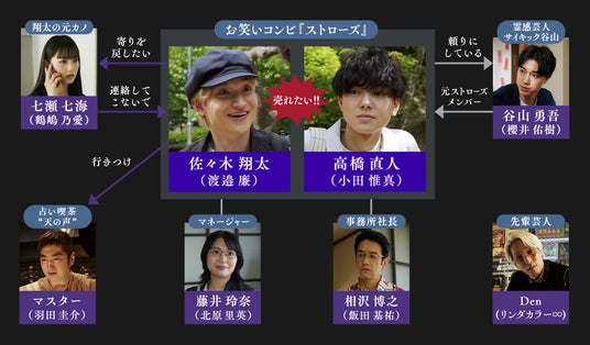 本作品がドラマ初主演となる渡邉廉さん(PSYCHIC FEVER from EXILE TRIBE)、モデル・俳優として活躍中の鶴嶋乃愛さん、2025年夏にメジャーデビューを控える小田惟真さん(THE SUPER FRUIT)、話題作へ立て続けに出演している櫻井佑樹さん(劇団EXILE)といった、Z世代を中心に人気急上昇中の若手俳優をはじめ、北原里英さん、Denさん(リンダカラー∞)、羽田圭介さん、飯田基祐さんら個性豊かな豪華キャスト陣を起用しました。
