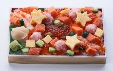 サーモン、ねぎトロ、イクラ、エビ、穴子など海鮮具材をたっぷり載せ、星型の玉子焼きでかわいくトッピング。