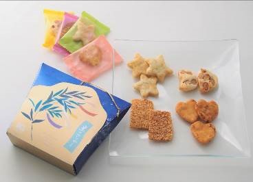 夜空を描いたパッケージにひとくちサイズのあられを詰め合わせました。