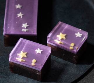 透明感のある三色の錦玉糖で夏の夜空にきらめく天の川を表現しました。