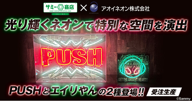 株式会社サミーネットワークスは、2024年2月22日(木)より、サミー公式グッズショップの"サミー商店オンライン"にてアオイネオン株式会社とコラボ製作した、『エイリやんネオン』と『PUSHネオン』の受注販売を開始いたします。