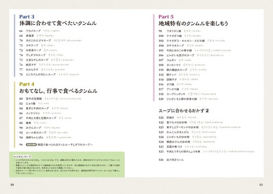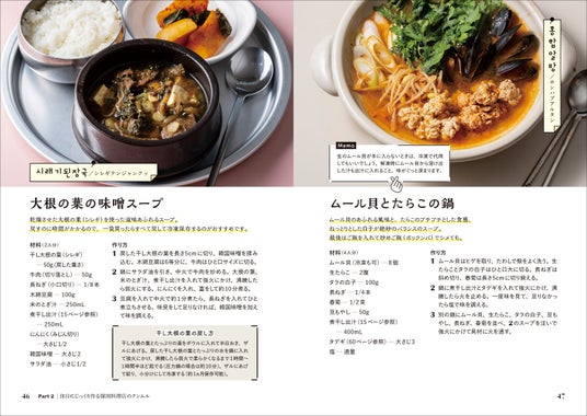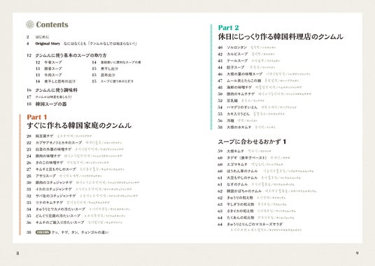 本章では、韓国の家庭で日常的に食べられているスープを60種掲載。本格的な出汁の取り方や、味変の必須アイテム、相性抜群のおかず類も合わせて紹介します。