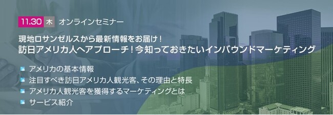 トランスコスモス株式会社(代表取締役共同社長:牟田正明、神谷健志)は、オンラインセミナー現地ロサンゼルスから最新情報をお届け!訪日アメリカ人へアプローチ!今知っておきたいインバウンドマーケティングを11月30日(木)に開催します。