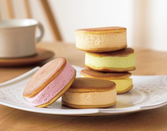 北のグルメハンターが〈石屋製菓〉と共同開発!白い恋人のチョコがアクセントになったピスタチオとヘーゼルナッツのクリームを、ふわふわ生地で包みました。