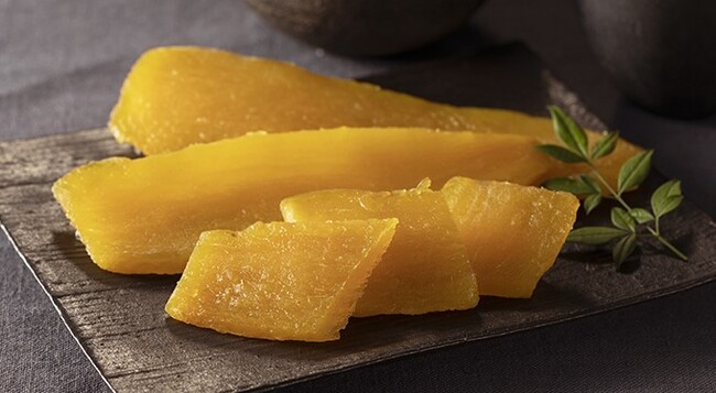 60日以上寝かせて甘さを引き出した「べにはるか」をじっくり加熱。より甘みが際立った、もっちり食感の干しいも。