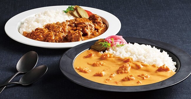 「黒毛和牛ビーフカレー」は、玉ねぎの調理法にとことんこだわり、黒毛和牛のうまみにたまねぎの甘味を加え奥深い味に仕上げました。「オマール海老のクリーミーカレー」は、素材のうまみを引き出し、濃度、塩気、口当たりなどを試行錯誤した自信作です。秋元シェフならではの視点で繊細に仕上げた 2 種のカレーをどうぞ。