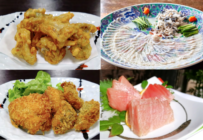 身が締まったとらふぐや本まぐろ、名物のアジフライ。水質や早い潮流に恵まれた松浦ならではのグルメセット。