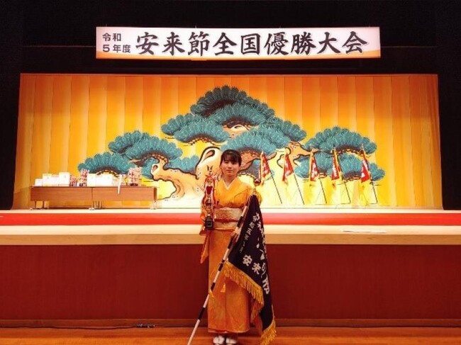 優勝した福本さんは、今回の結果を受け「中学1年生で安来節を始めてから、日々の練習と学業の傍ら、地元を中心に老人ホームへの慰問演奏や敬老会、様々なイベントに多数出演してきました。コロナ禍における各地の演芸活動の中止や3年間に及ぶ全国大会の中止、全国に約4000人いた安来節保存会会員の半減など、厳しい状況が続いていた中でも、諦めることなく日々自己研鑽に励んだ結果が表れたのだと思います」と話しました。